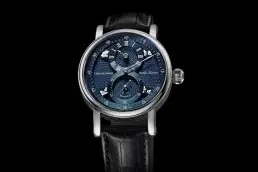 Due to the first Régulateur wristwatch created by Chronoswiss in 1988, this watch type quickly became popular and developed into the flagship of the brand. Now Chronoswiss is presenting the Regulator dial in a “3D” version: with a floating minute scale and subdial for hours and seconds, which is held in the air by an elaborate construction on screw-fastened bases.