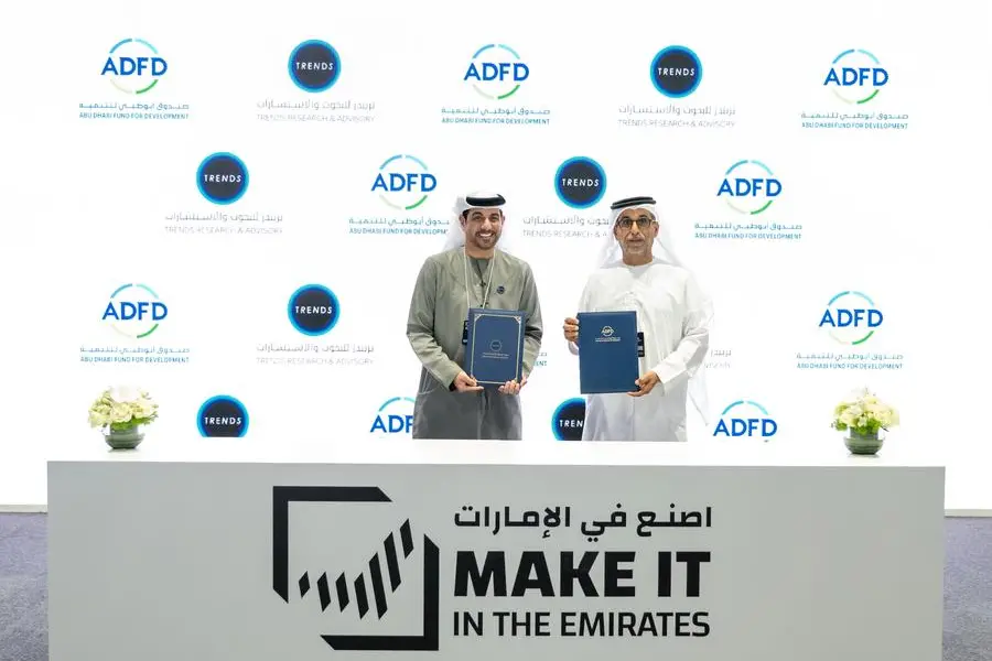 Abu Dhabi, UAE – In a move that underscores the UAE’s commitment to data-driven policymaking and knowledge-based development, Abu Dhabi Fund for Development (ADFD) and TRENDS Research & Advisory have signed a Memorandum of Understanding (MoU) to advance joint research across strategic areas of mutual interest. The agreement was signed during the fourth edition of “Make it in the Emirates” forum in Abu Dhabi—one of the UAE’s leading platforms for innovation, industry, and future-focused partnerships.