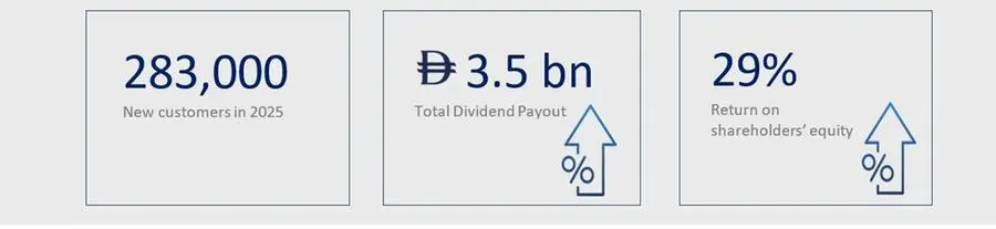 - Proposed cash dividend of 97 fils per share representing a total payout of AED 3.5 billion and equivalent to 50% of 2025 net profit