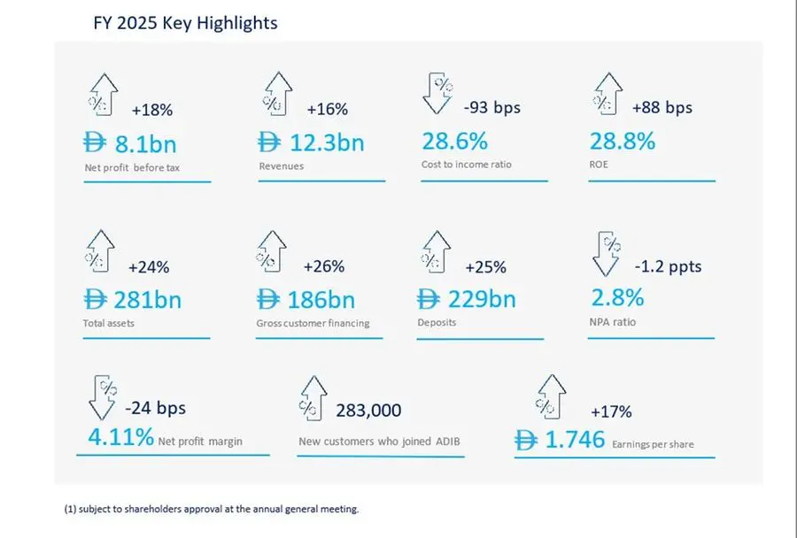 - ADIB achieved a record performance in 2025, supported by strong financial delivery across the group.