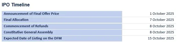 Admission of ordinary shares for trading on the DFM (“Admission”) is anticipated on or around 15 October 2025.