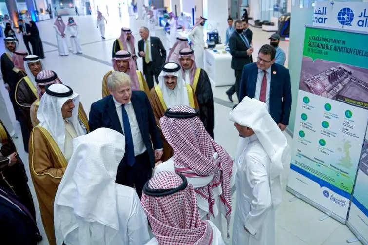 Dhahran, Saudi Arabia:- As part of his official visit to the Kingdom of Saudi Arabia and during his visit to the Sabic Development Centre in Riyadh, Mr. Boris Johnson, the UK prime Minister, visited the stand of #alfanar company who gave him an outline of their project in Teesside, North East of the UK, where the company is investing one billion pounds in the "Lighthouse Green Fuel" project to produce sustainable aviation fuel from waste.