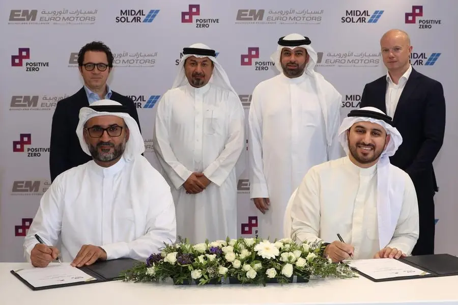 Representatives present at the signing ceremony included Mohammed Abdulghaffar Hussain (Chairman, Positive Zero), David Auriau (CEO, Positive Zero), Laurent Longuet (CEO at Positive Zero’s Distributed Generation business, SirajPower), Rashid Zayed Alzayani (Managing Director, Euro Motors), Richard Gough (GM, Euro Motors), Rashed Hamed Alzayani (Managing Director, Midal Solar), and Khalid A.Latif (Chief Executive Officer, Midal Solar).