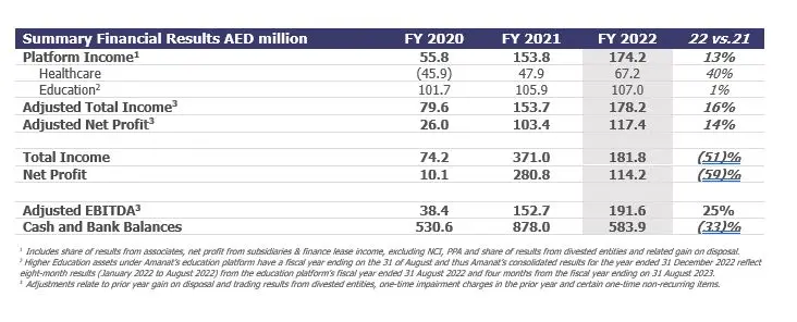 “Amanat continues to deliver on the strategy approved in 2020, with further growth in adjusted profitability following record financial performance in 2021. In the last two years we have concluded 9 transactions at a combined value of AED 2.5 billion, growing our platforms and resulting in a portfolio of market leading assets across the education and healthcare sectors in the GCC.