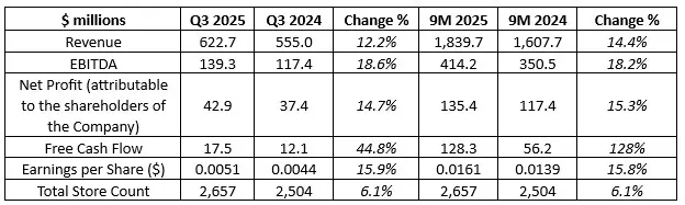 During the first nine months of 2025, the Company opened 68 new stores and integrated 46 additional restaurants from Pizza Hut Oman, bringing the total store count to 2,657 across 12 countries. The Company adopted a selective approach to store expansion to ensure judicious capital deployment.