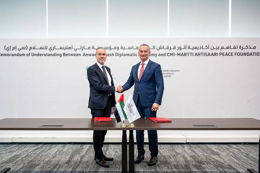 Abu Dhabi: The Anwar Gargash Diplomatic Academy (AGDA), a globally recognised diplomatic centre of excellence in Abu Dhabi, has signed a Memorandum of Understanding (MoU) with the CMI-Martti Ahtisaari Peace Foundation to foster collaboration in diplomacy, peacebuilding, and knowledge sharing.