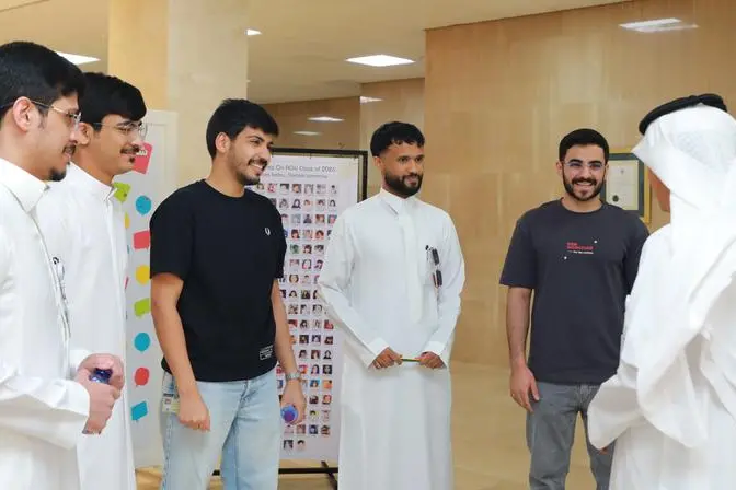Meanwhile, the Institutional Communication Center, in partnership with the Deanship of Student Affairs, organized a welcome reception that included the distribution of GCC flag pins, hot beverages, and sweets, alongside displays featuring photos of students nearing graduation as children in their early years, and other displays featuring motivational messages with sentimental and humanitarian themes.