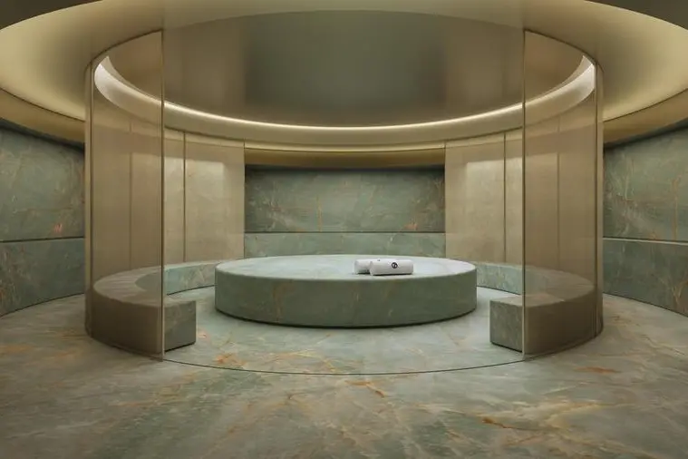 Armani Beach Residences at Palm Jumeirah also includes two presidential suites, which combine numerous different internal function areas – including a contemplative courtyard space with reflective pool, a personalised gym, libraries, a private cinema, and a private parking lounge with space for seven cars – with an opulent mega-terrace featuring an infinity pool.