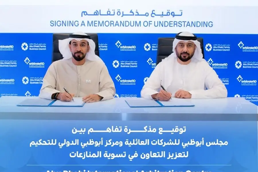Abu Dhabi: The Abu Dhabi International Arbitration Centre (arbitrateAD) has signed a landmark Memorandum of Understanding (MOU) with the Abu Dhabi Family Business Council, an affiliate of the Abu Dhabi Chamber of Commerce and Industry, in a strategic partnership to supporting the advancement of long‑term sustainability and governance of family‑owned enterprises in the UAE.