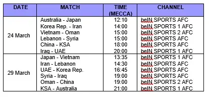 The AFC rights will be available across all beIN’s subscription packages, with the match schedule on beIN as follows: