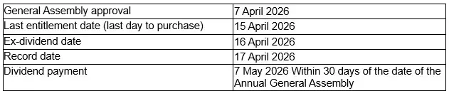1 Dividend yield calculated using the share price at market close on 7 April 2026.