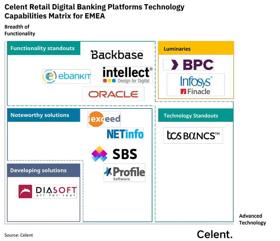 The independent evaluation done by Celent assessed twelve leading vendors across the region, including BPC, Infosys Finacle, Backbase, ebankIT, SBS, Profile Software, Intellect, Oracle, TCS BaNCS, NETinfo, i-exceed, Diasoft.