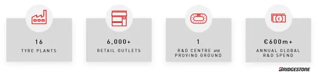 Bridgestone offers a diverse portfolio of premium tyres, tyre technologies and advanced mobility solutions. The company’s vision is to provide social and customer value as a sustainable solutions company. The Bridgestone E8 Commitment is a broad, global corporate commitment that clearly defines the value the company is promising to deliver to society, our customers and future generations in eight focus areas; Energy, Ecology, Efficiency, Extension, Economy, Emotion, Ease and Empowerment. These provide a compass to guide strategic priorities, decision making and actions throughout every area of the business.