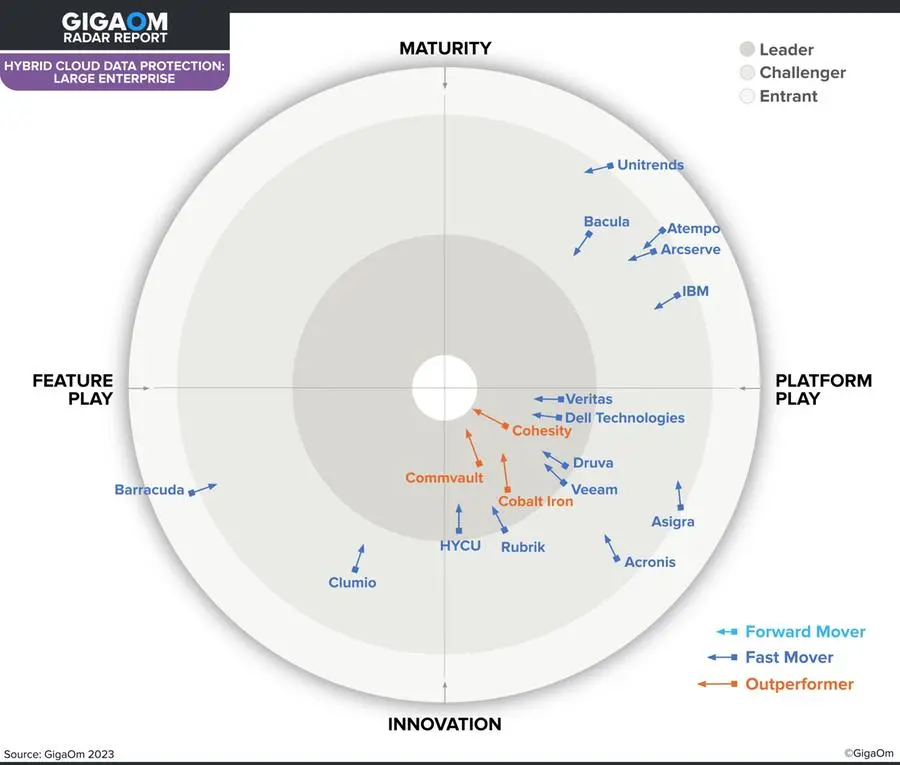 Commvault®, an enterprise data protection leader for today's global businesses, today announced that GigaOm has named the company a “Leader” and an “Outperformer” in its most recent report, the GigaOm Radar for Hybrid Cloud Data Protection for Large Enterprises.