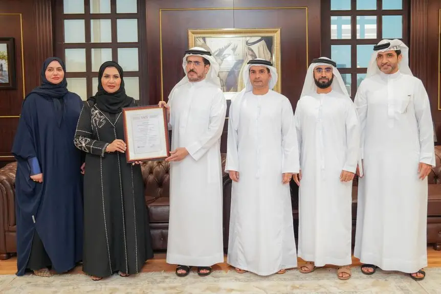 HE Saeed Mohammed Al Tayer, MD & CEO of DEWA, received the accreditation certificate from Amina Ahmed Mohammed, CEO of EIAC, in the presence of Waleed bin Salman, Executive Vice President of Business Development and Excellence, and a group of DEWA’s R&D officials.