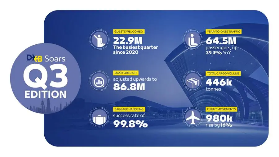 Dubai, United Arab Emirates – Propelled by strong growth throughout the first three quarters of the year and anticipation of an exceptional surge in guest numbers in the final quarter, Dubai Airports is forecasting annual passenger traffic at Dubai International (DXB) to reach 86.8 million – surpassing 2019 traffic.