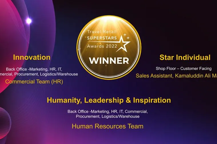 The Travel Retail Superstars Awards were first launched as part of the second Virtual Travel Retail Expo in 2021 and Dubai Duty Free has won four awards in its inaugural year, including the "Star Team – Shopfloor" for DDF Brand Ambassadors for Pernod Ricard, "Star Team-Back Office" for Operations and HR Team, "Star Individual-Shop Floor" for Sales Assistant, Ali Attia Ali Elsayed and "Innovation-Back Office" for IT Team for Home Delivery Specials service.
