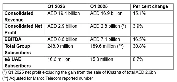 Abu Dhabi – e& reported a strong start to 2026, with robust Q1 financial results, asserting the Group's leadership in shaping the digital landscape and consolidating its position as a leading global group.