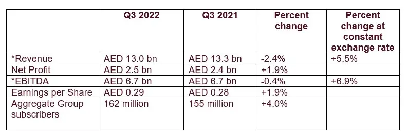 Abu Dhabi: e& (formerly known as Etisalat Group) today announced its financial results for Q3 2022.