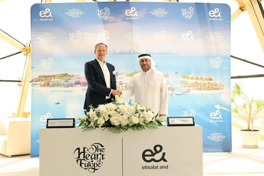 Dubai – e& UAE has signed a memorandum of understanding (MoU) with Kleindienst Group, the developer behind the iconic The Heart of Europe project located on six islands in “The World”, an artificial archipelago off the coast of Dubai, to pioneer a new era of digitally powered luxury hospitality in the UAE.