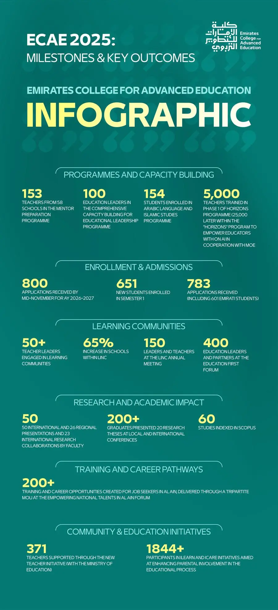 Dr. May Laith Al Taee, Vice Chancellor of ECAE, said: “The College’s achievements in 2025 demonstrate our deep commitment to supporting the UAE’s vision of building an innovative education system and preparing a new generation of leaders and educators that can guide Emirati schools towards excellence and global leadership. We have ensured that our academic programmes, research initiatives, and strategic partnerships form a strong foundation for educational progress, aligned with global developments and reinforcing the UAE’s position as a centre for innovation and knowledge.”