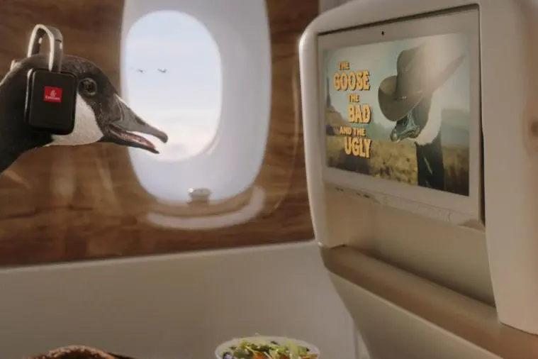 The campaign storyline follows Gerry as he ruffles feathers by deciding to Fly Better aboard a comfortable and sophisticated Emirates Premium Economy cabin, while his migrating bird-brethren are in ‘fowl humour’ after a long and tiring flight by wing. Gerry is spotted smugly bypassing his counterparts as they fly outside the plane window, while he indulges in a delicious meal and reclines in his spacious seat to enjoy ‘The Goose, The Bad and The Ugly’ movie on his 13.3" personal entertainment screen.