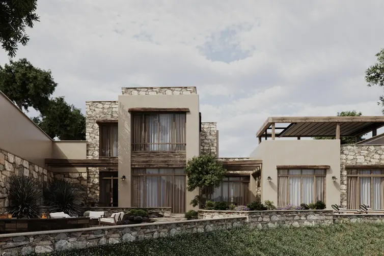 Guests are welcomed into a cosy lounge reminiscent of luxury Alpine resorts. The restaurant will feature an open-flame grill set against a panoramic mountain valley, blending seamlessly with the rustic Mediterranean farm-style cooking. The lodge will also feature a cooking studio, inviting guests to discover local and regional recipes, learn about nutrition, explore farm-to-table cooking, and share a unique culinary experience.