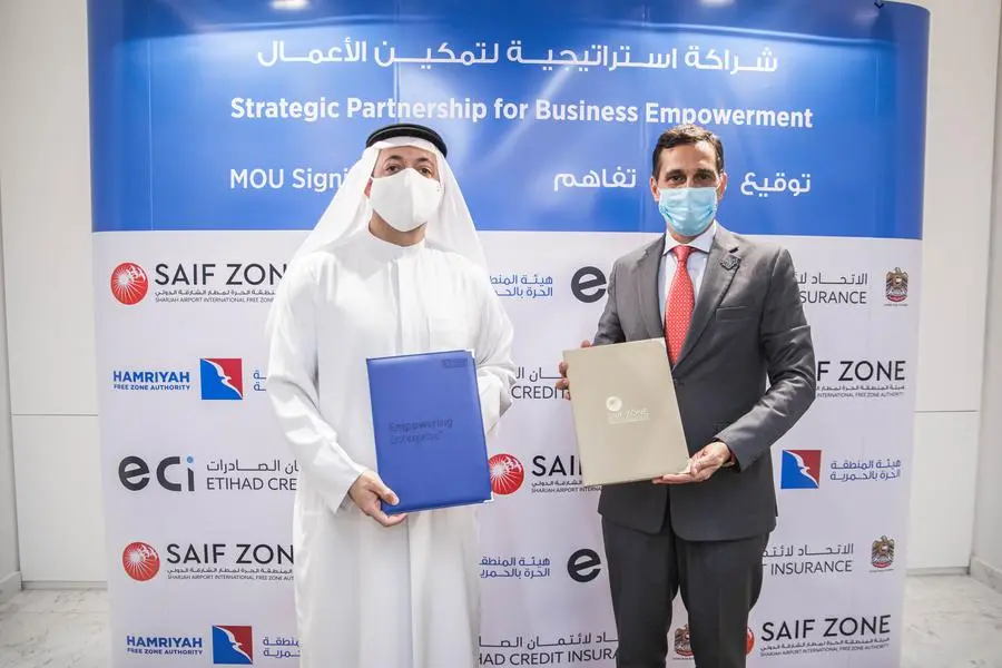 Sharjah, UAE: Etihad Credit Insurance (ECI), the UAE’s Federal export credit company, has partnered with the Hamriyah Free Zone Authority (HFZA) and the Sharjah Airport International Free Zone Authority (SAIF Zone) to support Sharjah exporters and re-exporters to start and grow their international business and secure their receivables globally.