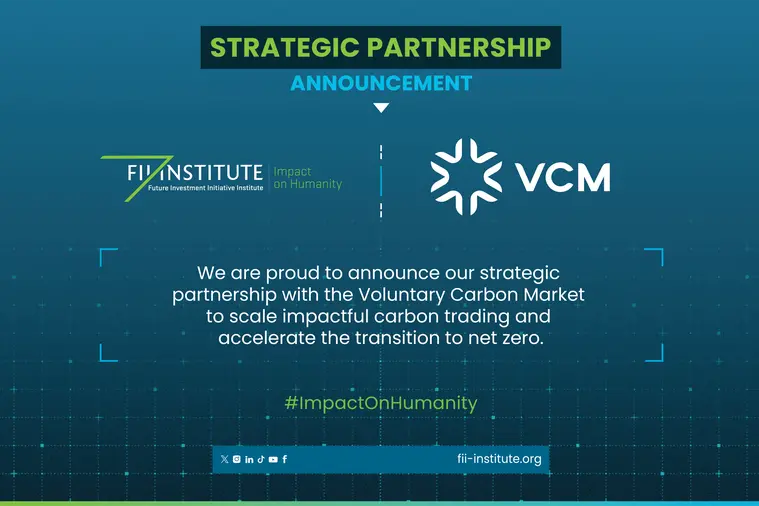 The partnership will accelerate the growth of high-integrity carbon credit markets by connecting global buyers and suppliers and mobilizing investment in projects that reduce, remove, and offset emissions. By combining VCM’s role as a regional hub with FII Institute’s global convening power, the collaboration highlights carbon markets as critical tools for achieving net zero while driving green economic diversification in line with Saudi Vision 2030.