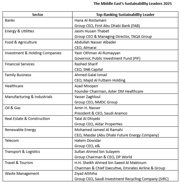 Click here for the full list of the Middle East’s Sustainability Leaders 2025.