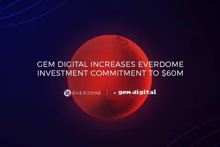 UAE, Dubai: Everdome, the most hyper-realistic metaverse, has announced that GEM Digital Limited (“GEM”), a Bahamas-based digital asset investment firm that sources, structures and invests in utility tokens listed on over 30 CEXs and DEXs globally, has agreed to increase its investment commitment from $10 million to $60 million.