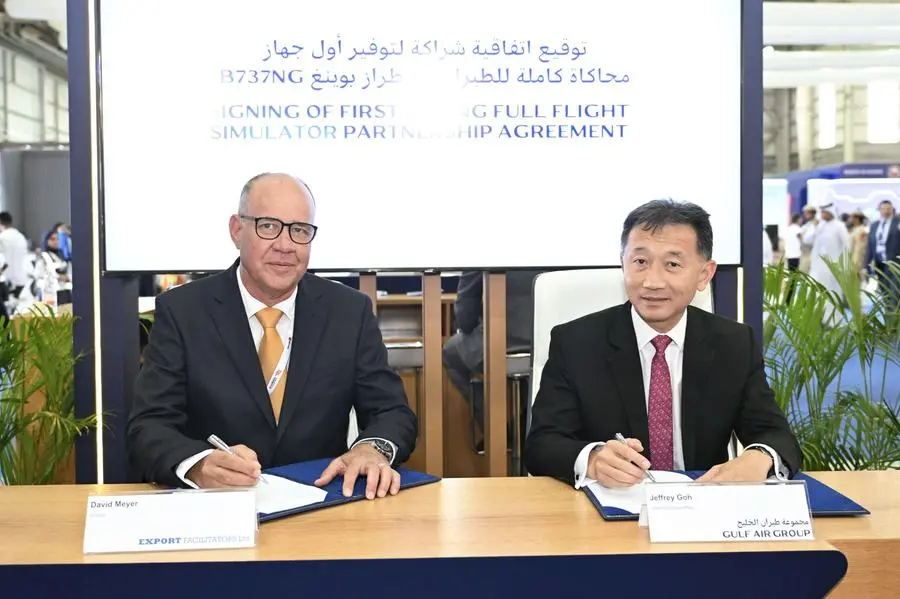 Muharraq, Bahrain: Gulf Aviation Academy (GAA), the training arm of Gulf Air Group, and Export Facilitators Limited have signed a strategic partnership to bring a cutting-edge Boeing B737NG Level-D Full-Flight Simulator to the Kingdom of Bahrain. This agreement marks a milestone for GAA, as it takes on the management of its first full-flight Boeing simulator, further cementing Bahrain's position as a leading aviation training destination. The signing agreement took place on the second day of the Bahrain International Airshow, held under the patronage of His Majesty King Hamad bin Isa Al Khalifa, from November 13th-15th, 2024.