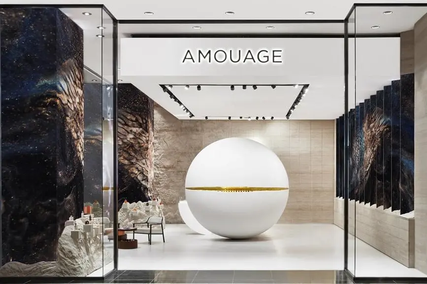 Amouage has inaugurated its new boutique in Muscat, where the perfume maker’s story began four decades ago. Behind the crystalline glass façade, the curated space in Mall of Oman is home to a breathtaking artistic depiction of a solar eclipse in the Omani desert, designed by architecture firm Heroine Paris.
