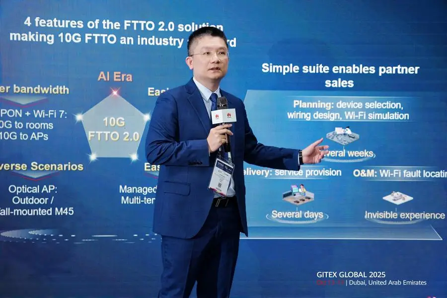 Dubai, UAE: Huawei hosted the FTTO Forum themed "Fiber to Green and Reliable" at GITEX GLOBAL 2025. The event gathered over 100 experts, customers, and partners from the Middle East, Central Asia, and beyond to explore the latest trends in advancing intelligent campus upgrades via "FTTO + AI", as well as share practical application achievements in this field.