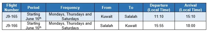 Flight schedule between Kuwait (KWI) and Salalah (SLL):