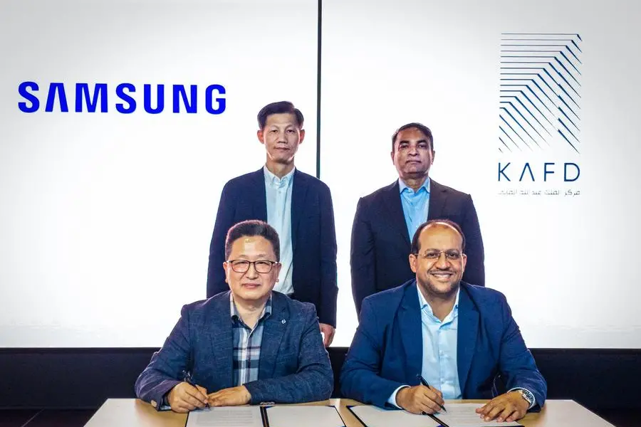 Riyadh: The King Abdullah Financial District Development and Management Company (KAFD DMC), Riyadh’s premier business and lifestyle destination, and Samsung Electronics today announced the signing of a Memorandum of Understanding (MoU) to explore areas for collaboration on the development and implementation of integrated smart city technologies in KAFD. The strategic partnership will further enhance the digital experience for the district’s businesses, tenants, and visitors and build on KAFD’s status as a conduit for collaboration and innovation between Saudi Arabia and Asia.