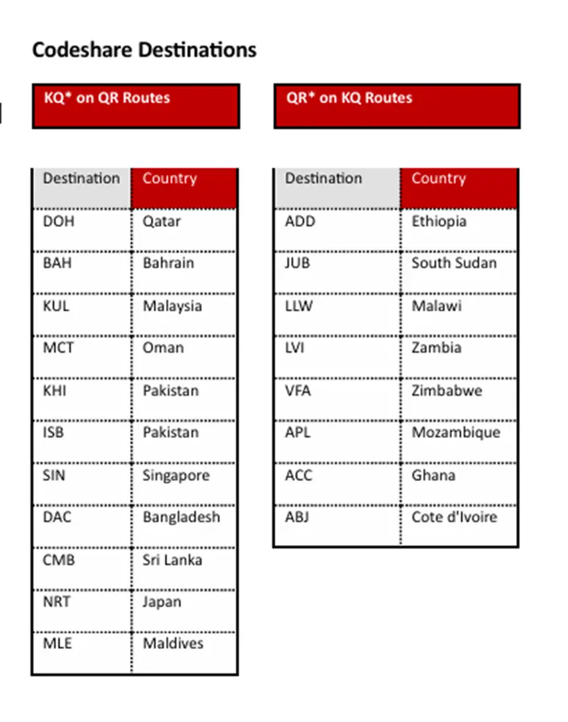 The agreement follows the signing of a strategic partnership between the two national carriers in July and marks its first major milestone. The implementation comes alongside the introduction of a third daily Qatar Airways flight between Doha and Nairobi, further strengthening air links between Kenya and the Gulf region.