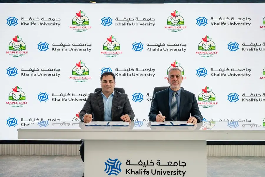 The MoU was signed by Professor Bayan Sharif, Provost, Khalifa University, and Ala Jaff, CEO and Founder, Maple Gulf AgriTech Poultry. The MoU establishes a research-driven alliance to accelerate innovations in advanced agritech, resource-efficient poultry production, and local food manufacturing models.