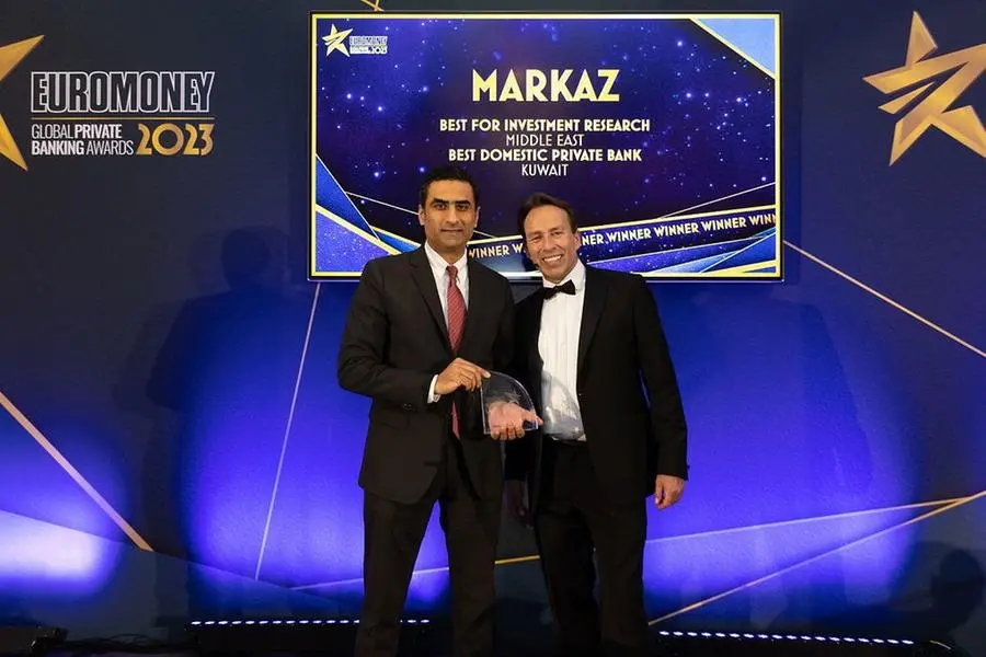 Kuwait: Kuwait Financial Centre “Markaz” announced that it has won three prestigious awards in the first quarter of 2023. Markaz was recently named the ‘Best Private Bank in Kuwait’ by Global Finance, as part of the magazine’s eighth annual World’s Best Private Banks Awards for 2023, which was held in New York City on March 16. The Company was also honored by Euromoney with two awards – the ‘Middle East's Best for Investment Research’ and the ‘Best Domestic Private Bank in Kuwait’, awarded at the Global Private Banking Awards 2023 ceremony, held in London on March 29. The awards honored institutions that best serve the needs of high-net-worth individuals as they seek to enhance, preserve and pass on their wealth. The judges select the winners with input from executives and industry insiders, information submitted by the institutions, and independent research. Markaz was praised for how it leverages its network of relationships to provide the best products and services for its clients. Its investment in technology, provision of customized solutions to clients and approach to ESG was also deemed notable.