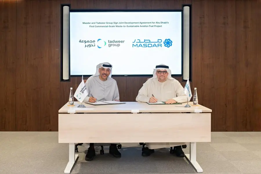 Abu Dhabi, UAE: Masdar, a global clean energy leader and a pioneer in green hydrogen, and Tadweer Group, a driving force in unlocking the value of waste, today announced the signing of a Joint Development Agreement (JDA). This agreement aims to progress the development of the first commercial-scale Waste-to-Sustainable Aviation Fuel (SAF) project in Abu Dhabi.