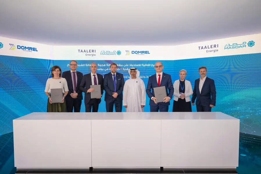 It was witnessed by the Polish Ambassador to the UAE, His Excellency Mr Jakub Slawek, the President of the Management Board of Bank Gospodarstwa Krajowego, Beata Daszyńska-Muzyczka, Masdar Director, Development & Investment (EMEA), Ahmed Al Awadi, Domrel Development Chief Executive Officer, Maciej Chmielarski and Taaleri Energia Managing Director, Kai Rintala.