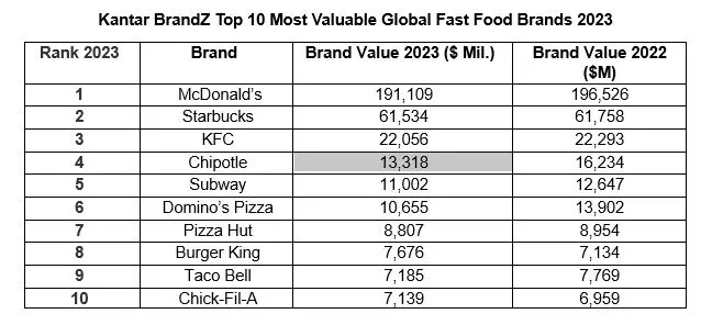 The Kantar BrandZ Most Valuable Global Brands 2023 report, including a detailed analysis of the fast food sector, is available now via www.kantar.com/campaigns/brandz/global