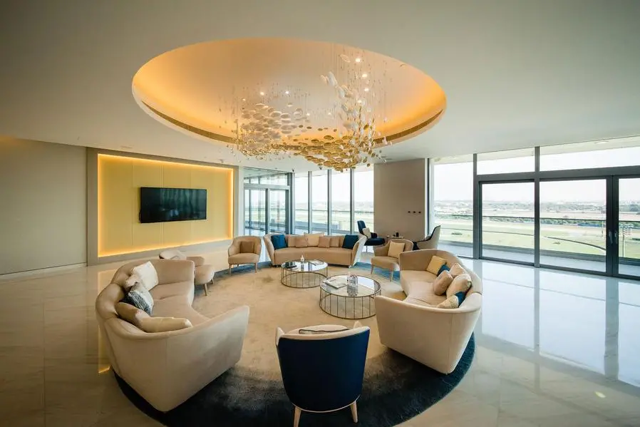 Crowned by a dramatic, cantilevered Crescent Roof that features curved solar and titanium panels that maximize the building's energy consumption efficiency, the iconic Meydan Grandstand is a unique and 'intelligent' development boasting a range of unique and innovative facilities for guests, horsemen, patrons, and travellers alike.
