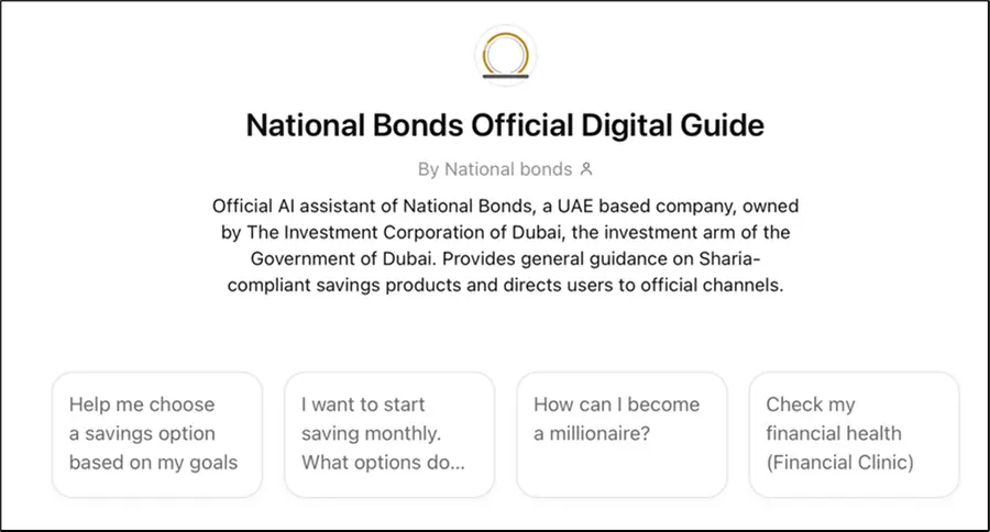 Dubai, United Arab Emirates: National Bonds, the UAE’s Sharia-compliant savings and investment company, has introduced an AI-powered Digital Guide on ChatGPT to simplify savings and investment discovery. The initiative reflects a strategic move to embed artificial intelligence into its customer engagement approach, positioning National Bonds as the first financial institution in the UAE to offer an AI-powered guide of its kind.