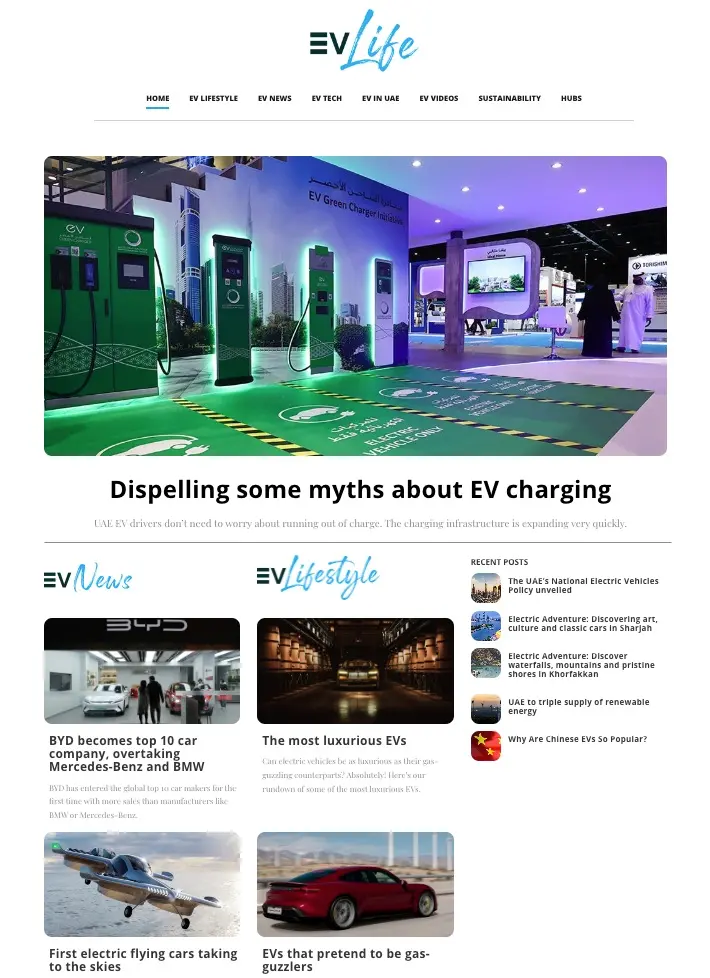The content is published in English and Arabic. EVLife.ae is intended to become a credible source of knowledge for electric mobility adopters, manufacturers, regulators, and automotive stakeholders.