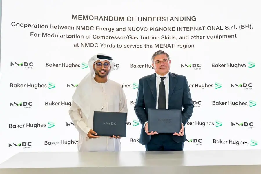 NMDC Energy signed a Memorandum of Understanding (MoU) with Baker Hughes to explore potential collaboration opportunities to increase the localization of some of Baker Hughes products and solutions in the Middle East, North Africa, Turkey, and India (MENATI) region by leveraging NMDC’s state-of-the-art facilities and capabilities. Specifically, the collaboration will explore gas technology products, such as Gas Compression Stations up to LNG Modularization, to serve the local regional market in its energy transition objectives.
