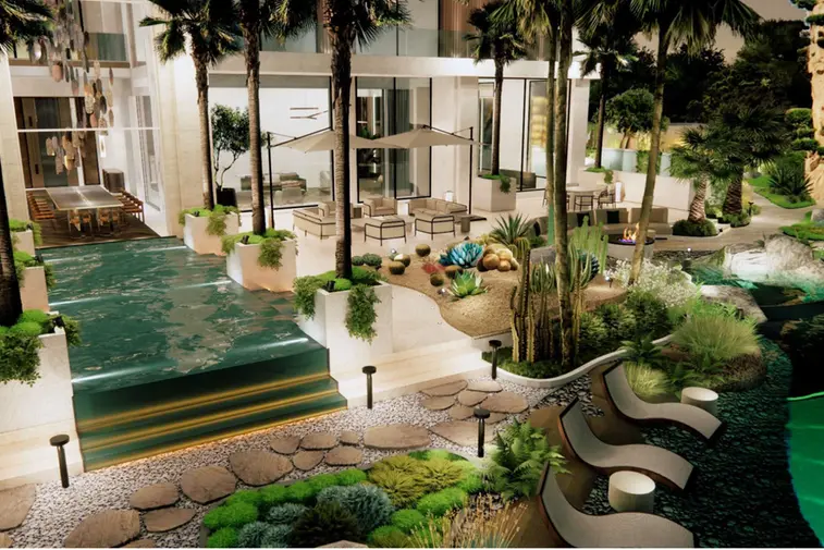 The villa features five bedrooms with luxurious walk-in closets, 10 bathrooms, a private study, and a multipurpose room that can also serve as a meditation space. A statement show kitchen by Arclinea Kitchens will anchor the main living area, while staff accommodation is located externally to preserve the privacy and exclusivity of the residence.