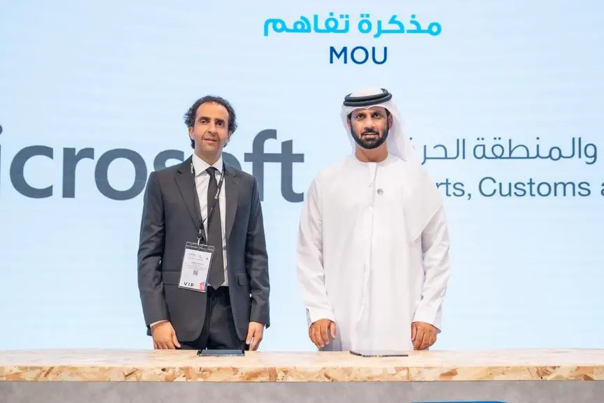 The Ports, Customs and Free Zone Corporation (PCFC) and Microsoft signed a Memorandum of Understanding (MoU) to explore collaboration opportunities in the areas of skilling, ideation workshops, sustainability, and application development and deployment on joint projects, powered by the Microsoft cloud. The MoU was signed at GITEX Global 2023 by H.E. Nasser AlNeyadi, Vice President of the Ports, Customs and Free Zone Corporation, and Naim Yazbeck, General Manager of Microsoft UAE.