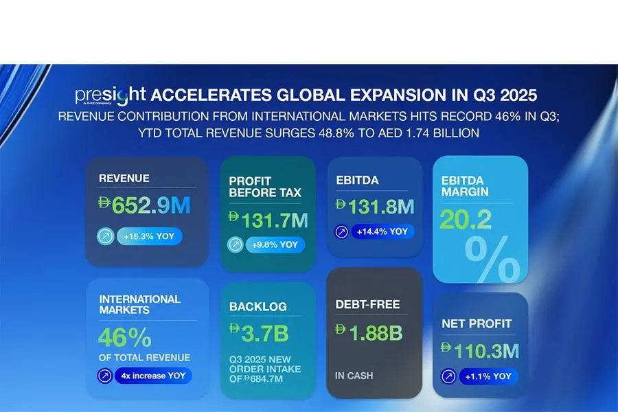 Thomas Pramotedham, Chief Executive Officer of Presight, said: “Presight delivered a strong third-quarter performance, powered by our twin engines of growth through strengthened partnerships with UAE federal entities and the continued expansion of our international footprint. This balanced approach positions Presight as the UAE’s trusted AI partner, and a leading regional exporter of AI and digital transformation services across the Middle East, Central and South-East Asia, Africa and Europe. We continue to drive sustained growth, a healthy backlog, and long-term value creation for our stakeholders.”