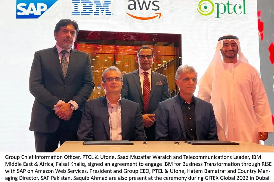 Dubai: PTCL Group, a subsidiary of e& (formerly known as Etisalat Group), engaged IBM for Business Transformation through RISE with SAP on Amazon Web Services and partnered with Nokia to explore innovative ICT solutions for government, cities, industries, and businesses. The announcements were made at two signing ceremonies held at GITEX Global 2022 in Dubai, UAE, where senior executives from collaborating organizations participated including PTCL & Ufone, SAP, IBM, Amazon Web Services (AWS) and Nokia.